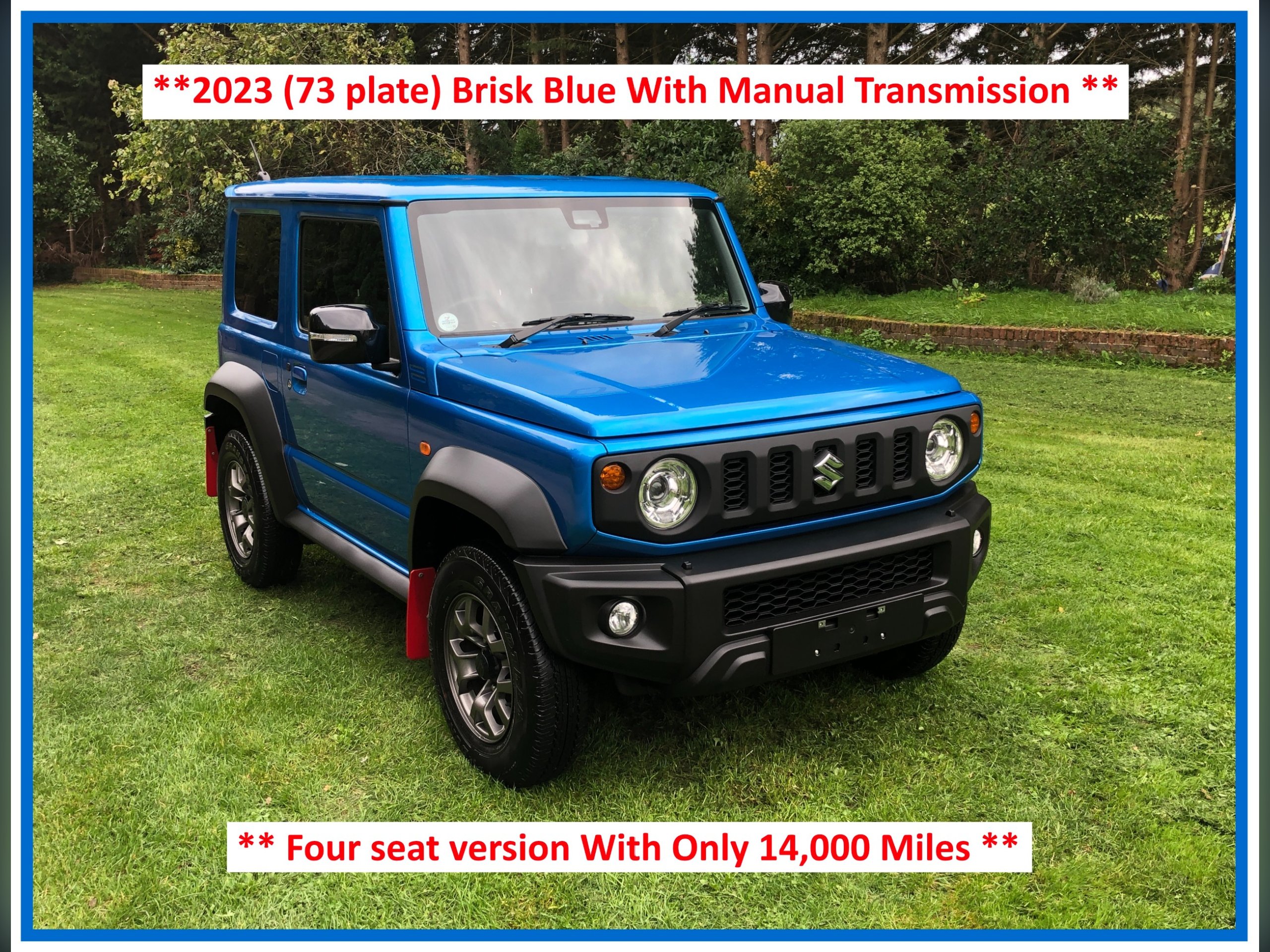 Just arrived in the uk and available at the end of September is this 2023 (73 plate) Suzuki Jimny SZ5 4 seater with only 14,000 miles, Rare 5 Speed Manual, Finished in rare Brisk blue, The Japanese Jimny is cheaper to road tax compared to the uk lcv version (uk lcv £335, jap import £210) and very high spec compared to the uk lcv version... Keyless entry and push button start (2 remotes), Front collision avoidance system, Lane departure warning system, Heated electric folding mirrors with built in indicators, Heated seats, Cruise control, Hill descent, Air conditioning, LED headlights with washers, The mud flaps can be changed to black or completely removed by myself if not to your taste, Sold with a brand new Uk spec android/apple car play radio and new over mats included in the price, Optional detachable towbar supplied and fitted £380.
