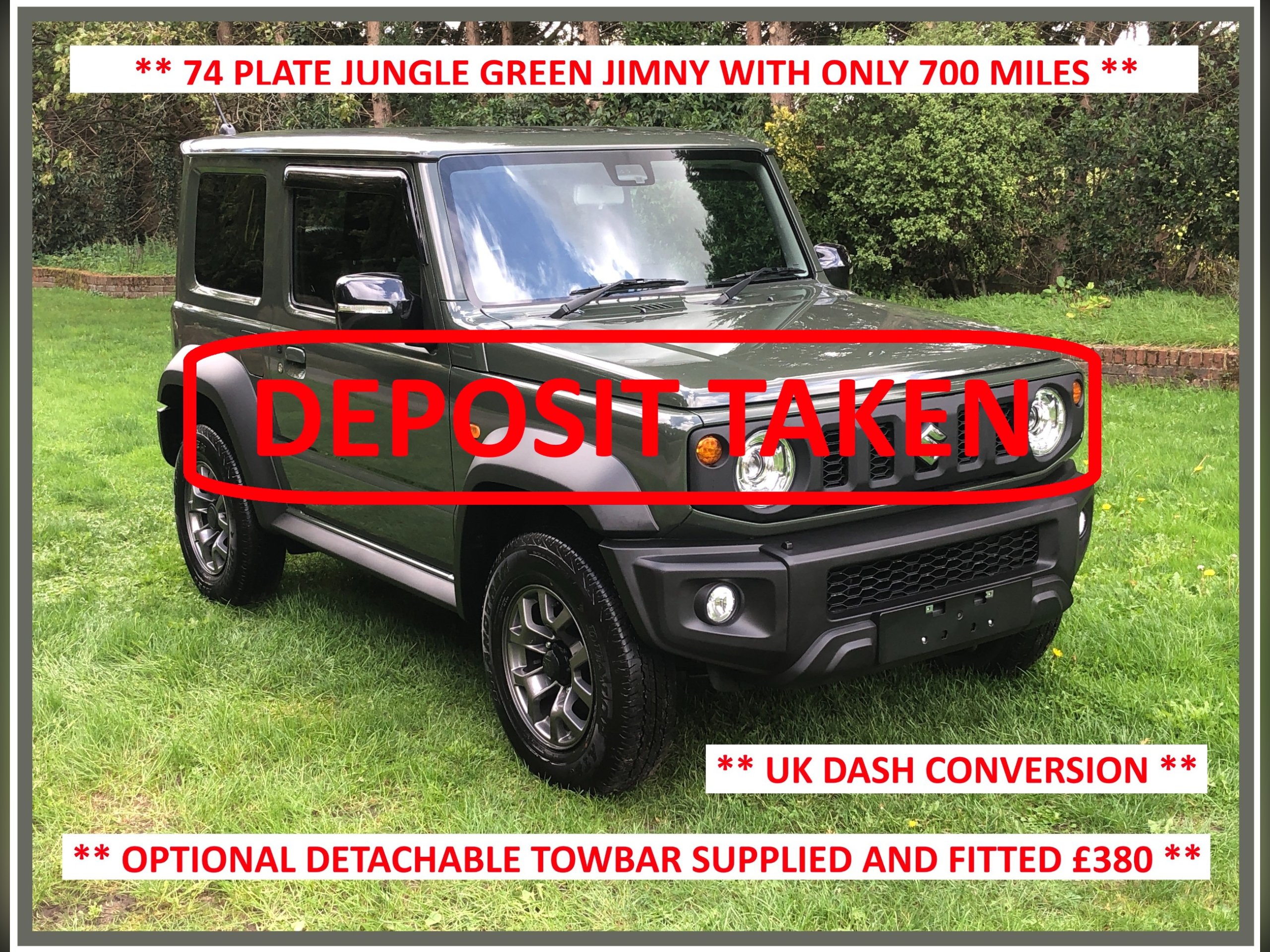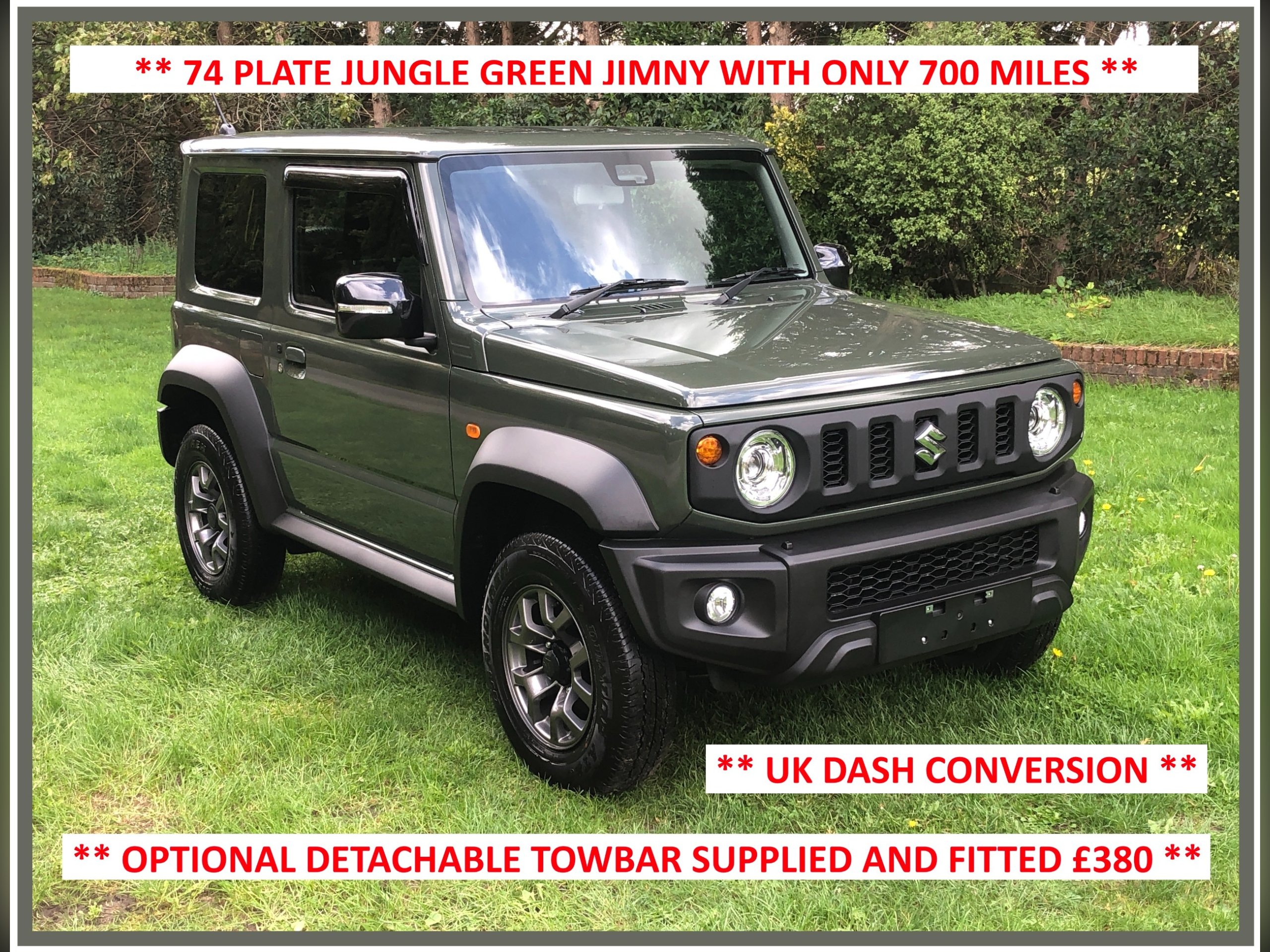 74 Plate Jungle green Suzuki Jimny SZ5 4 seater with a automatic gearbox, Uk dash/speedo english language conversion, The Japanese Jimny is cheaper to road tax compared to the uk lcv version... uk lcv £345, jap import £220 and it’s also not subject to the lower speed limits like the uk lcv commercial version, This SZ5 version also higher spec compared to the uk lcv version... Keyless entry and push button start (2 remotes), Front collision avoidance system, Lane departure warning system, Heated electric folding mirrors with built in indicators, Heated seats, Cruise control, Hill descent, Air conditioning, LED headlights with washers, Brand new Uk spec android/apple car play stereo with hands free telephone, Optional detachable towbar supplied and fitted for £380.