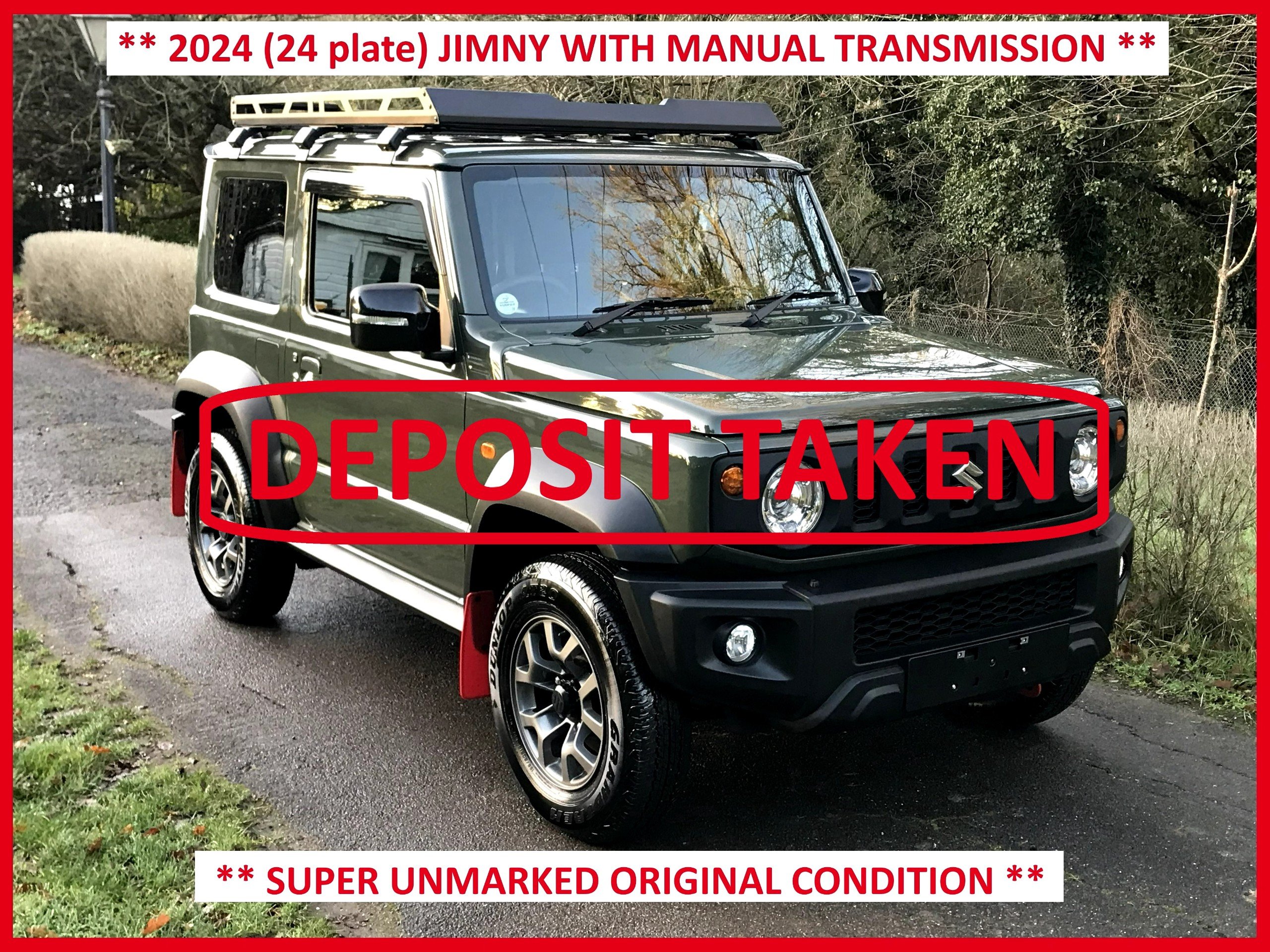 2024 (24 plate) Suzuki Jimny SZ5 4 seater with a 5 Speed Manual gearbox and only 7000 miles and its in super original conditon !, Finished in jungle green with some nice extras (roof rack,rear ladder,rear storage boxes,wind deflectors,mud flaps,rear tailgate wire protectors,reversing camera) and very keenly priced for a 2024 jungle green manual !!, The Japanese Jimny is cheaper to road tax compared to the uk lcv version... uk lcv version £345 jap import £220 and also they are very high spec compared to the uk lcv version... Keyless entry and push button start (2 remotes), Front collision avoidance system, Lane departure warning system, Heated electric folding mirrors with built in indicators, Heated seats, Cruise control, Hill descent, Air conditioning, LED headlights with washers, New uk spec android/apple car play stereo with reverse camera, Optional detachable towbar supplied and fitted for £380.